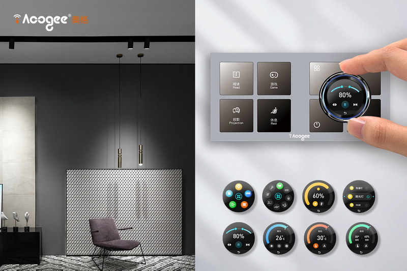 AooGee奧格璽印國風X系列色系選用當下裝飾流行百搭色-星空灰,連框設計滿足不同空間“1+2+3”組合式搭配,方程式連體無縫拼接;墻上的方圓之道,將文化智慧糅合機械美學,是一個蘊含東方人處世哲學的智能面板,在舉手投足間便展示出了富有修養(yǎng)的獨特氣質(zhì)。