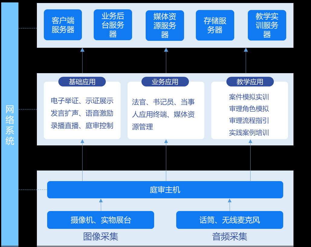 庭審媒體資源管理系統(tǒng)需采用B/S架構(gòu),功能需具備:排期管理,內(nèi)容管理,播控管理,權(quán)限管理,系統(tǒng)管理,日志管理,集中控制等;符合審理庭建設(shè)的技術(shù)要求,可對審理庭的庭審主機(jī)進(jìn)行注冊管理,對所有審理庭案件進(jìn)行自動(dòng)同步錄入;開庭對法庭音視頻信號(hào)進(jìn)行實(shí)時(shí)錄像,支持庭審專網(wǎng)的直播、點(diǎn)播、筆錄查看及下載等功能。