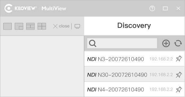 5、所有千視的產(chǎn)品都默認(rèn)啟用NDI,因此N30的NDI源可以通過NDI Monitor進(jìn)行發(fā)現(xiàn)或使用千視 Multiview(后續(xù)將升級(jí)為 Multiview Pro)等NDI工具在網(wǎng)絡(luò)進(jìn)行發(fā)現(xiàn):