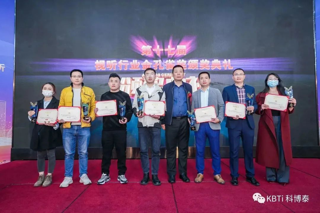 我司非常榮幸的能夠參與此次的頒獎典禮大會,在本屆頒獎典禮上,科博泰受到主辦方和業(yè)內(nèi)同行的認(rèn)可,榮獲兩個2022年度金孔雀獎杯和相關(guān)的榮譽(yù)證書,分別是“2022年度十大專業(yè)音響品牌大獎“和”2022年度十大會議系統(tǒng)品牌大獎“