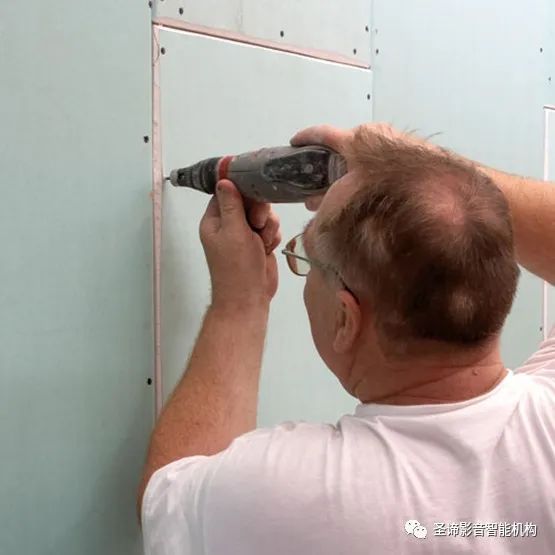 將石膏板蓋上,擰緊螺絲,然后四周封密接縫
