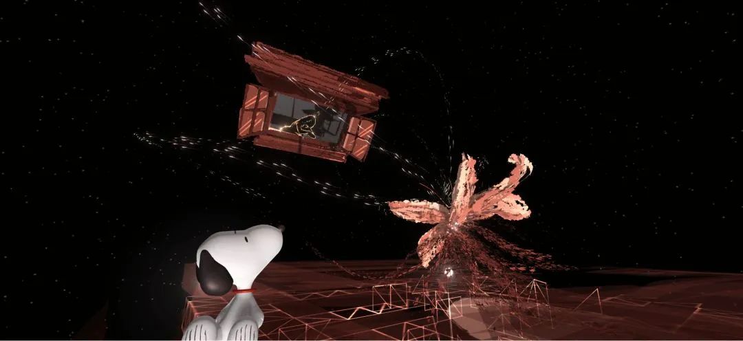 作品讓觀眾隨著史努比動漫形象在虛實之間尋找童年回憶中遺失的美好。運用VR虛擬現(xiàn)實光繪、3D掃描等技術(shù),用視聽語言創(chuàng)造出瑰麗的光影世界。