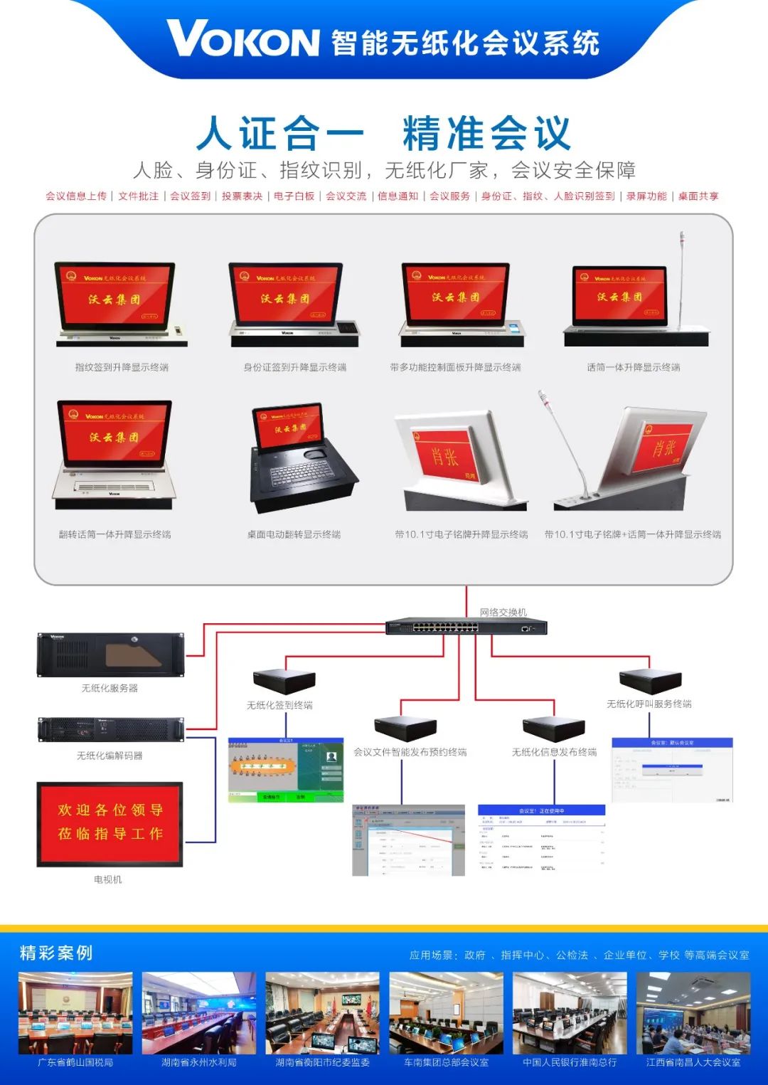 VOKON智慧無紙化會議系統(tǒng)及產(chǎn)品應(yīng)用在會議室中,方便了會前、會中、會后管理,既提高了會議資料分發(fā)、收集、整理的效率,又做到節(jié)能環(huán)保!