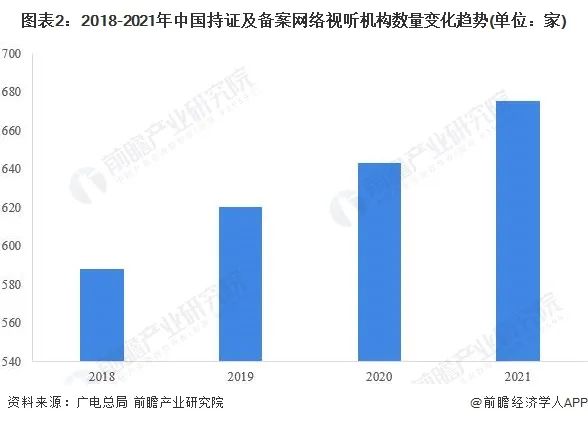 隨著網(wǎng)絡視聽市場的持續(xù)火爆,越來越多的企業(yè)參與到網(wǎng)絡視聽行業(yè)發(fā)展中來。據(jù)廣電總局統(tǒng)計數(shù)據(jù)顯示,2018年以來,全國持證及備案網(wǎng)絡視聽機構(gòu)持續(xù)增長,到2021年,全國持證及備案網(wǎng)絡視聽機構(gòu)累計675家。不難看出,各產(chǎn)業(yè)發(fā)展勢必以網(wǎng)絡視聽市場為依托,輻射傳統(tǒng)行業(yè)。