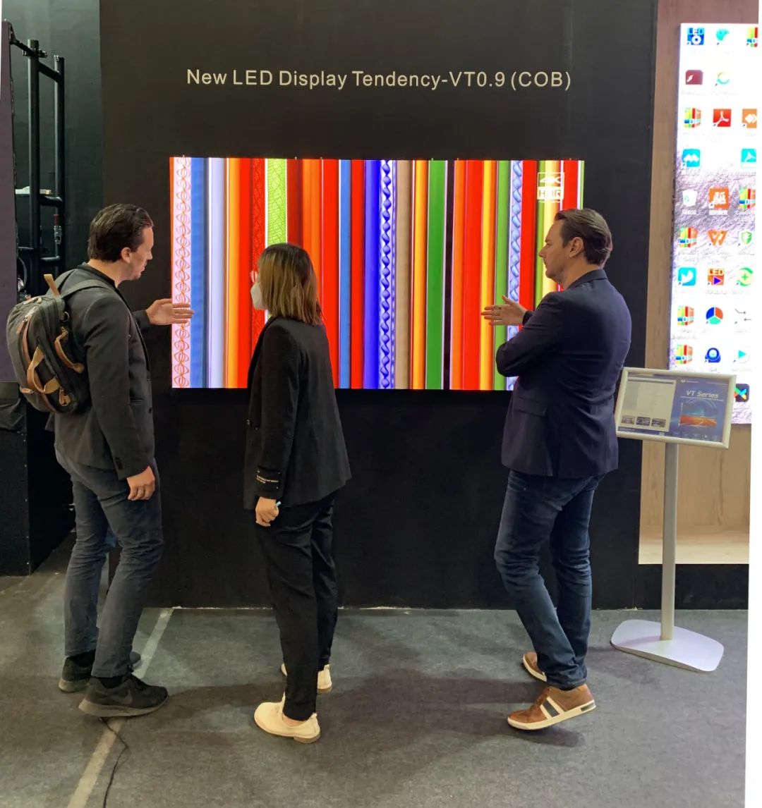 本次ISE展會(huì)聯(lián)建光電展臺(tái)上,聯(lián)建光電COB產(chǎn)品VT0.9系列以高清亮麗的畫(huà)質(zhì)吸引眾多眼球,產(chǎn)品采用聯(lián)建光電Vmini微間距顯示技術(shù),全倒裝COB封裝,擁有大于10000:1超高對(duì)比度,微米級(jí)發(fā)光芯片,可呈現(xiàn)更黑的黑場(chǎng)和更高的對(duì)比度,呈現(xiàn)出無(wú)與倫比的高清畫(huà)質(zhì)。聯(lián)建光電擁有成熟的COB微間距生產(chǎn)線,達(dá)到規(guī);慨a(chǎn),目前已獲得眾多海內(nèi)外客戶訂單。
