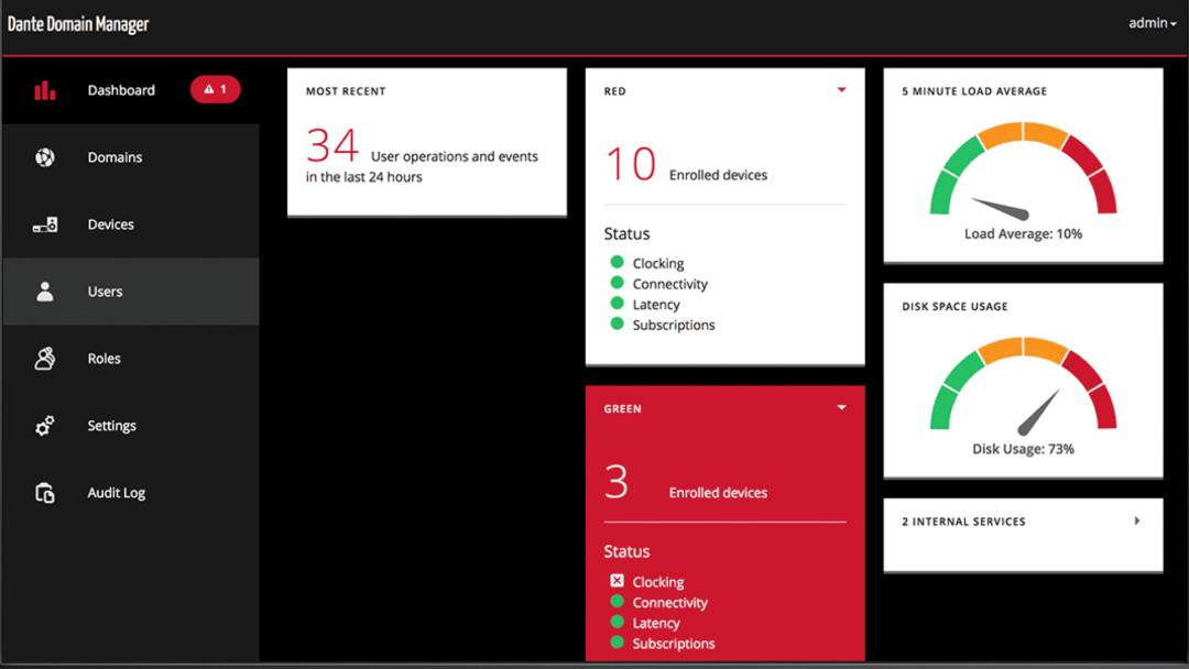 當然除了強大專業(yè)音頻處理矩陣外,Dante的加持讓會議變得順暢、優(yōu)質且高效。無壓縮高保真音質、極低的網絡延遲、集成簡單,搭配基于Dante AoIP系統(tǒng)架構的管理規(guī)劃的服務器的DanteDomainManager(DDM)管理軟件,完美實現了對整個系統(tǒng)的統(tǒng)一管理,實時監(jiān)測,為音頻網絡提供了前所未有的安全性、可擴展性和可管理性。