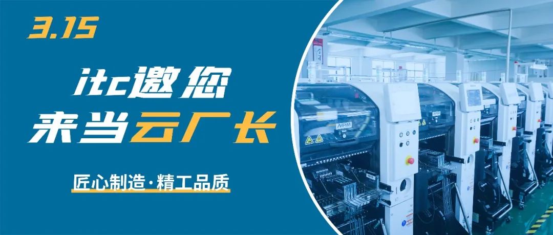為讓大家近距離了解企業(yè)在宣傳貫徹落實省、市、區(qū)高質(zhì)量發(fā)展大會的部署要求,推動“第一責(zé)任人”知法明責(zé)、守法履責(zé)等方面所做的工作。3月15日,由番禺區(qū)市場監(jiān)督管理局指導(dǎo),廣東保倫電子股份有限公司(itc)主辦的“匠心智造.精工品質(zhì)——itc邀您來當(dāng)云廠長”主題活動,將以網(wǎng)絡(luò)直播形式帶大家直擊itc透明工廠,一同檢閱itc的品質(zhì)管控流程。