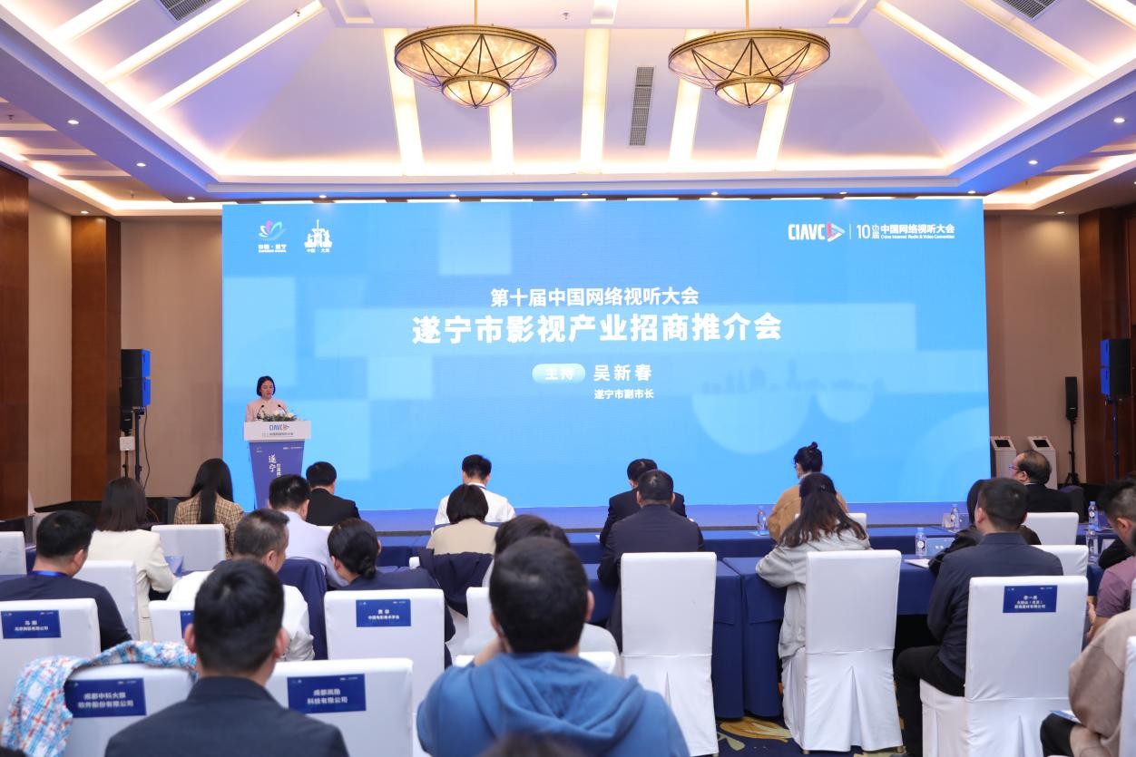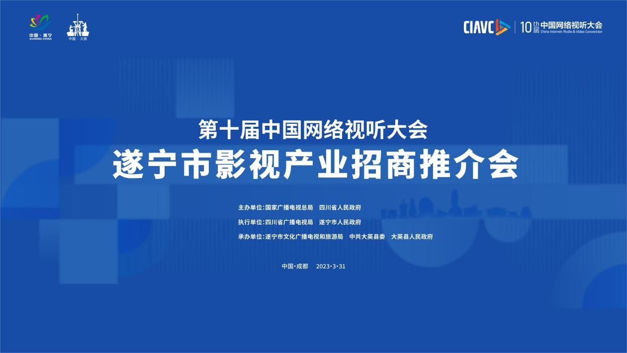 為深入學(xué)習(xí)貫徹黨的二十大、省委十二屆二次全會、市委八屆六次全會精神,推進(jìn)文化自信自強(qiáng),堅持以人民為中心的創(chuàng)作導(dǎo)向,推出更多增強(qiáng)人民精神力量的優(yōu)秀作品,展示遂寧在創(chuàng)作拍攝、基地建設(shè)、品牌打造等方面取得的成績,3月31日,由國家廣播電視總局、四川省人民政府主辦,四川省廣播電視局、遂寧市人民政府承辦,遂寧市文化廣播電視和旅游局、中共大英縣委、大英縣人民政府執(zhí)行的第十屆中國(成都)網(wǎng)絡(luò)視聽大會子活動——遂寧市影視產(chǎn)業(yè)招商推介會在成都世紀(jì)城新國際會議中心錦江廳舉行。