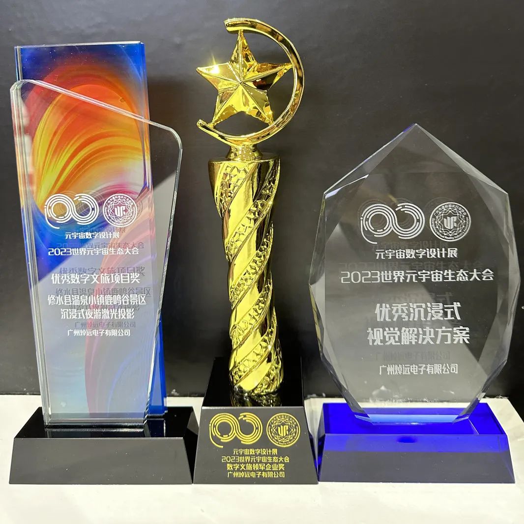 憑借著精彩的光影應(yīng)用方案,焯遠(yuǎn)電子榮獲元宇宙數(shù)字設(shè)計(jì)展-2023世界元宇宙生態(tài)大會(huì)“優(yōu)秀數(shù)字文旅項(xiàng)目獎(jiǎng)”、“數(shù)字文旅領(lǐng)軍企業(yè)獎(jiǎng)”、“優(yōu)秀沉浸式視覺解決方案”三大獎(jiǎng)項(xiàng)。