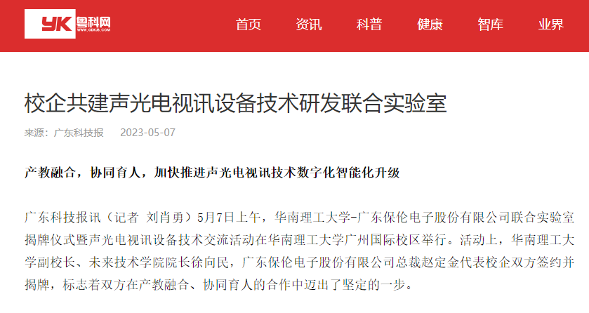 為進(jìn)一步拓展校企合作的深度和廣度,5月7日上午,廣東保倫電子股份有限公司(itc)與華南理工大學(xué)未來(lái)技術(shù)學(xué)院共建的聲光電視訊數(shù)智產(chǎn)品聯(lián)合實(shí)驗(yàn)室簽約暨揭牌儀式在華南理工大學(xué)廣州國(guó)際校區(qū)順利舉辦。本次合作簽約意義重大,標(biāo)志著校企雙方在產(chǎn)教融合、協(xié)同育人的合作中邁出了堅(jiān)定的一步,著眼于打通從實(shí)驗(yàn)室到產(chǎn)業(yè)化的“最后一公里”,引領(lǐng)行業(yè)高質(zhì)量發(fā)展。