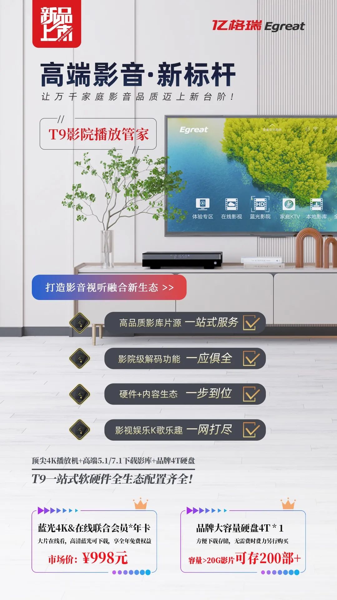 而且,T9真正意義上一步到位搞定播放源和內(nèi)容源,行成完善的硬件+內(nèi)容生態(tài),提供高品質(zhì)影音一站式服務(wù),讓萬(wàn)千家庭視聽(tīng)品質(zhì)邁上了新臺(tái)階!