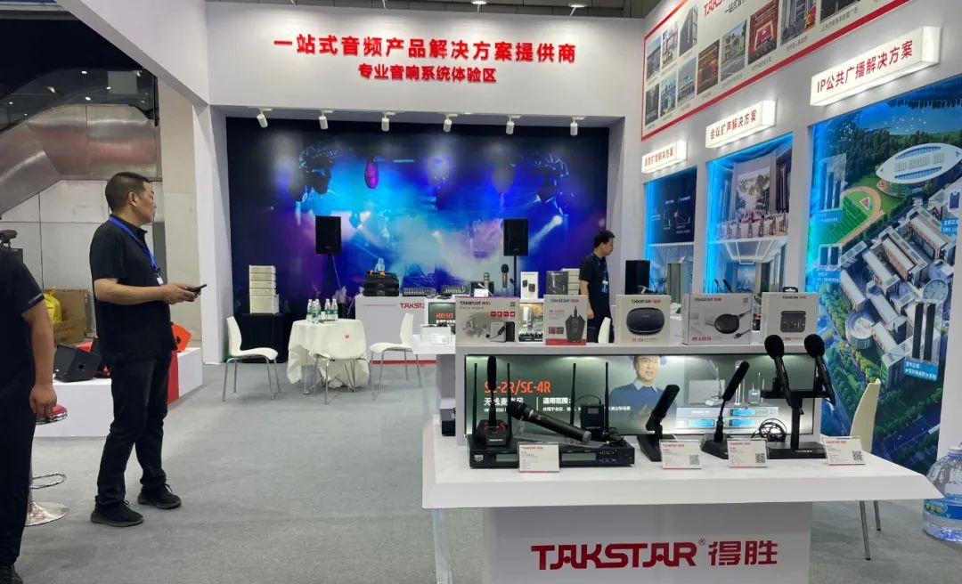 回顧本次展會,得勝攜旗下“TAKSTAR得勝”音響系統(tǒng)、會議系統(tǒng)、IP廣播系統(tǒng)及多套一站式音頻應(yīng)用解決方案亮相此次展會。此外,得勝還展出了麥克風(fēng)、耳機、擴音器等電聲產(chǎn)品,滿足各領(lǐng)域應(yīng)用需求。