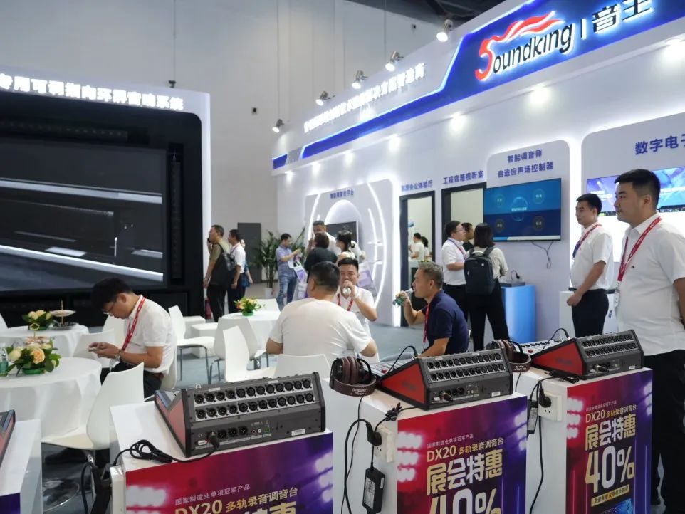 在音王旗下國(guó)際品牌英國(guó)CADAC(卡迪克)展位上,其沉浸聲技術(shù)正吸引著眾人的目光。許多參觀者都被這種全新的聲音體驗(yàn)所吸引,他們紛紛駐足,嘗試體驗(yàn)這種全新的沉浸式聲音效果。