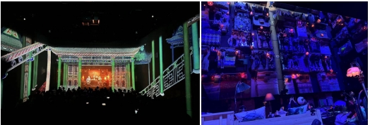 “紅樓夢第三十三回”劇場(左)和“床劇場”(右)由科視Christie GS系列激光投影機(jī)進(jìn)行投影