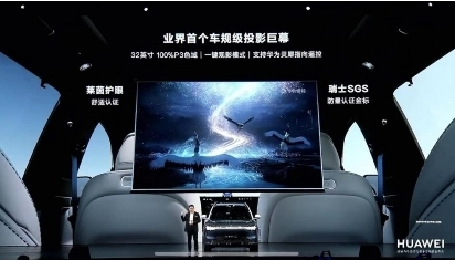 2023 年 12 月 26 日, 全景智慧旗艦 SUV 問界 M9 正式亮相, 該車搭載業(yè)界首個車規(guī)級 32 英寸投影巨幕, 由光峰科技提供核心器件, 激光顯示擁有 100% P3 色域, 巨幕可任意懸停, 伸縮收納, 萊茵護眼舒適認證和瑞士 SGS 防暈認證, 確保長時間觀影不傷眼、不暈車, 在車輛行駛過程中也能穩(wěn)定觀看。