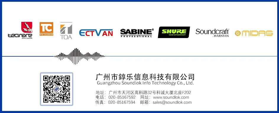 錞樂科技是西班牙TECNARE、美國(guó)TC-AUDIO、美國(guó)SABINE、日本TOA、英國(guó)Soundcraft聲藝、美國(guó)SHURE舒爾、中國(guó)ECTVAN艾維等進(jìn)口品牌中港澳地區(qū)總代理及授權(quán)代理、集銷售和技術(shù)服務(wù)設(shè)計(jì)為一體的綜合性企業(yè)。提供專業(yè)音響銷售、現(xiàn)場(chǎng)安裝施工、系統(tǒng)設(shè)備調(diào)試、操作培訓(xùn)及售后維修保障等全方位服務(wù)。更多產(chǎn)品信息請(qǐng)登錄 www.soundlok.com