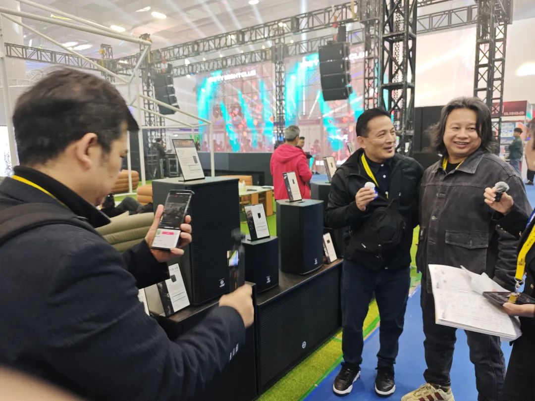 本屆2024GETshow展,廣州市赫茲音響有限公司展位以豐富的展示內(nèi)容吸引了眾多目光。展位以沉浸式超大型戶外電音派對應(yīng)用場景為布局,簡約而不失大氣,充分展示了赫茲音響的品牌形象。主要分為轟趴體驗區(qū)、線陣試音區(qū)、洽談區(qū)、超大屏幕案例展示區(qū)、觀展休息區(qū)、沙發(fā)區(qū)。展出的產(chǎn)品更是精品云集,人氣爆棚。國內(nèi)外觀眾絡(luò)繹不絕,讓每一位觀眾都能親身感受到專業(yè)產(chǎn)品的獨(dú)特魅力。