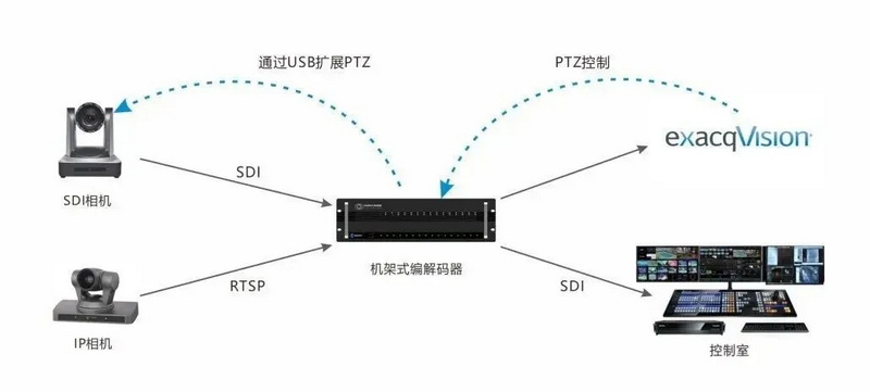 千視給出的答案是:在活動(dòng)會場布置一套機(jī)架式編解碼器 - 即可實(shí)現(xiàn)一對多/多對一傳輸、多畫面監(jiān)看/互動(dòng)以及跨互聯(lián)網(wǎng)制作/管理等功能。