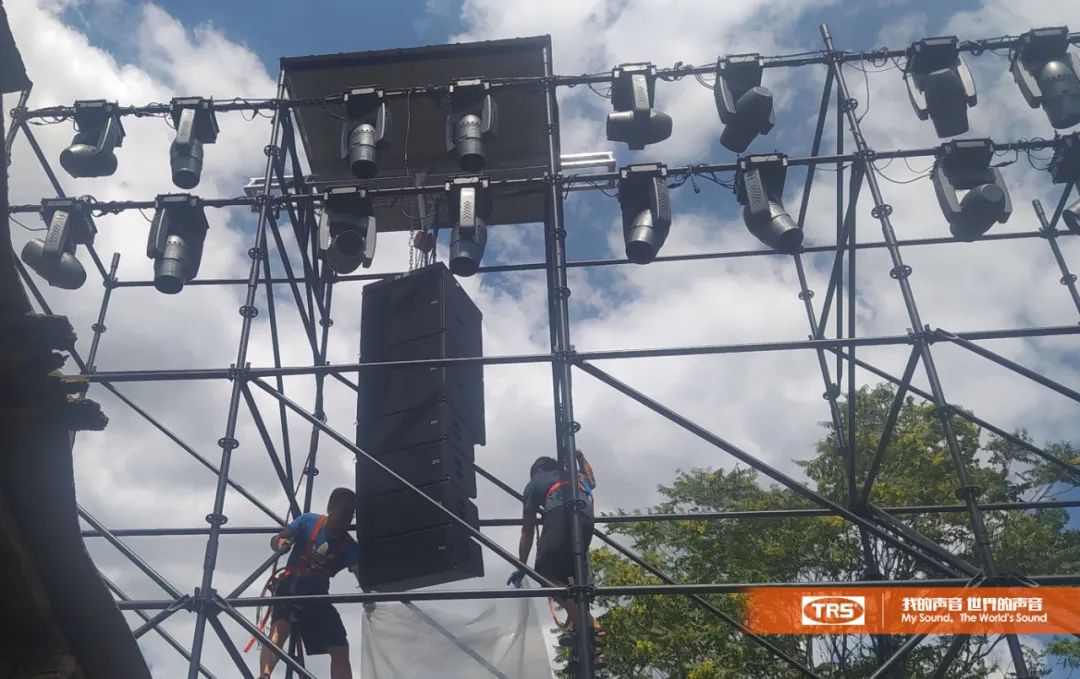 據(jù)了解,本次擴(kuò)聲系統(tǒng)主要為戶(hù)外文藝演出、地方戲曲表演、歌劇話(huà)劇等,擴(kuò)聲系統(tǒng)的優(yōu)劣會(huì)直接影響到遠(yuǎn)近距離聽(tīng)眾接收聲音的真實(shí)感,同時(shí)還需要適應(yīng)戶(hù)外多種演出環(huán)境的性能。因此,擴(kuò)聲系統(tǒng)要求確保娛樂(lè)綜合性活動(dòng)時(shí)能提供較大的聲壓級(jí)、分布均勻的聲場(chǎng)以及整個(gè)聲場(chǎng)的低頻音域。因此,針對(duì)場(chǎng)地的實(shí)際應(yīng)用需求,采用了2組(4+2)TX-20雙10寸線(xiàn)陣音箱吊掛在舞臺(tái)兩側(cè)。TX-20是一款高性能、高功率、高指向性、多用途的線(xiàn)陣音箱,提供2X10寸(75mm音圈)高品質(zhì)低音,3寸(75mm音圈)壓縮驅(qū)動(dòng)器模塊高音。是菱杰音響在專(zhuān)業(yè)演出系統(tǒng)中出色的產(chǎn)品,搭配TX-20B它們可以組合成中大型演出系統(tǒng)。