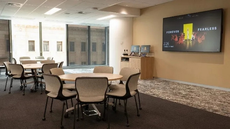 除了傳統(tǒng)的教室以外,弗林德斯大學(xué)內(nèi)有一間可容納25人的董事會會議室,配備了尖端的音視頻技術(shù),旨在促進(jìn)高層決策會議的順利進(jìn)行。該會議室的核心設(shè)施包括一套Crestron Automate VX自動追蹤系統(tǒng)。會議室前端配備了一塊98英寸的NEC C系列顯示屏,會議桌兩側(cè)設(shè)有86英寸的NEC C系列顯示屏,以及兩臺One Beyond PTZ攝像機(jī)。